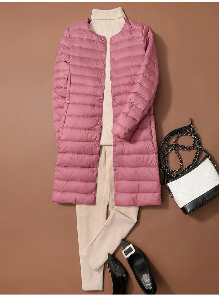 La doudoune longue légère femme de DRIPMOOD est le manteau parfait pour un style élégant et décontracté en ville. Avec sa coupe slim et longue, elle met en valeur votre silhouette sans effet "gonflé". Fabriquée en duvet de qualité et tissu extérieur ultra-léger, elle vous offre une chaleur douce et confortable. Son design noir intemporel et sa fermeture à glissière solide et discrète en font un choix chic et moderne pour toutes vos activités quotidiennes, que ce soit en automne ou en hiver.